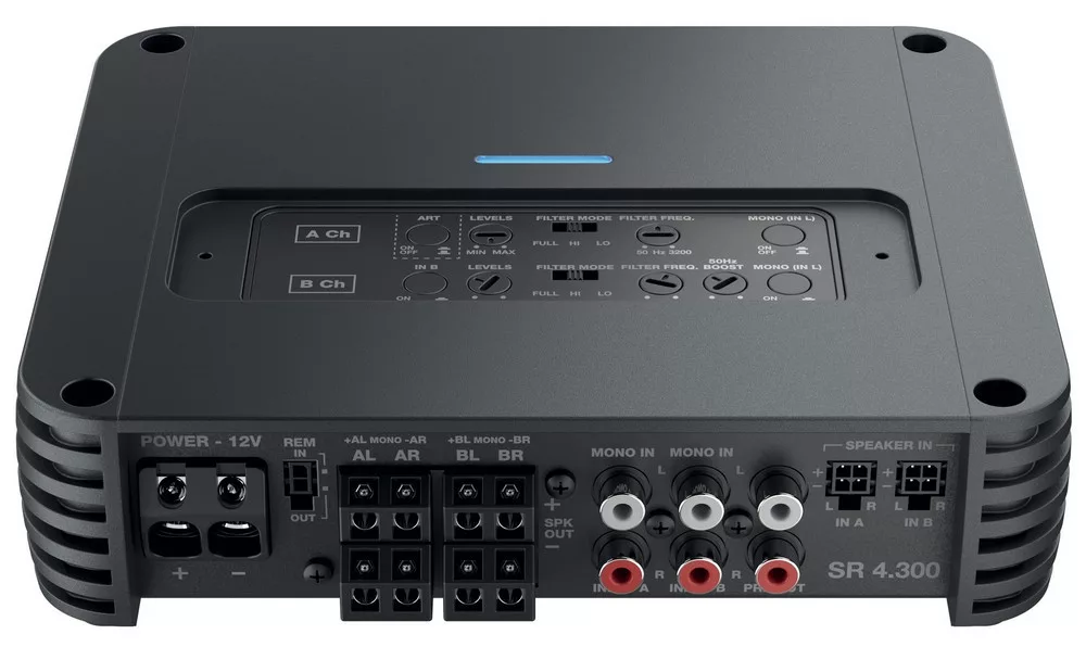 Audison SR 4.300 ver.2 4 csatornás D-osztályú autóhifi erősítő 4 x 130W 2 Ohm, kompakt kivitel, teljes körű szűrőszakasz