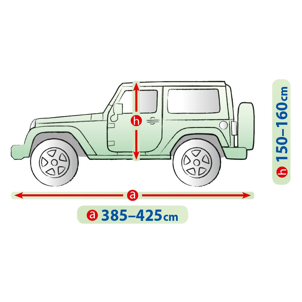 Ponyva terepjáró karosszériájú járművekhez. Hosszúság 385-425 cm, magasság 150-160 cm.