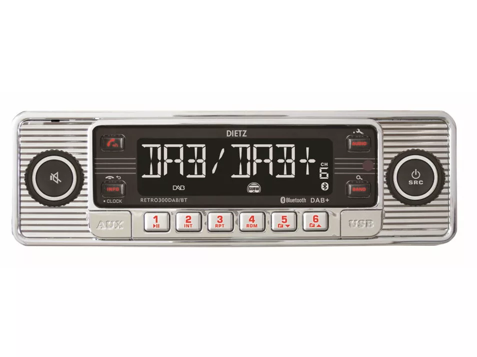 Dietz Retro 300DAB-BT Klasszikus megjelenésű, modern technológiájú autórádió a Retro szerelmeseinek ezüst-króm szín