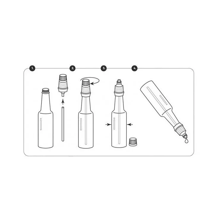 3. Nyomja meg az adalékot tartalmazó műanyag palackot, és töltse meg az adagolófejet a kívánt mennyiségű adalékkal. Ezután öntse az adalékot a tartályba.