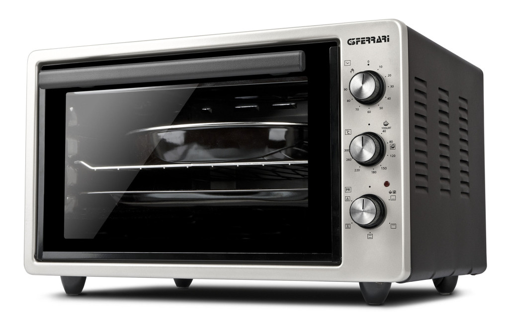 A G3Ferrari Rostó 45 többfunkciós, tágas, 45 liter es sütőterével rövid idő alatt grillezhetünk, süthetünk benne ételt vagy süteményt. Akár 2 fogás egyidejű elkészítésének a lehetőségével, alacsony energiafelhasználás sal, különféle helyzetekben hasznos otthonunkon belül és kívül egyaránt. A légkeverés lehetőséget ad, hogy rövidebb idő alatt elkészíthetőek legyenek az ételek. A 300 fok ot is meghaladó belső hőmérséklet és a mellékelt speciális kerek serpenyő különösen alkalmassá teszi pizza és focaccia (olasz lepénykenyér) sütésére is, úgy, hogy a tészta ropogós lesz, de nem ég meg.