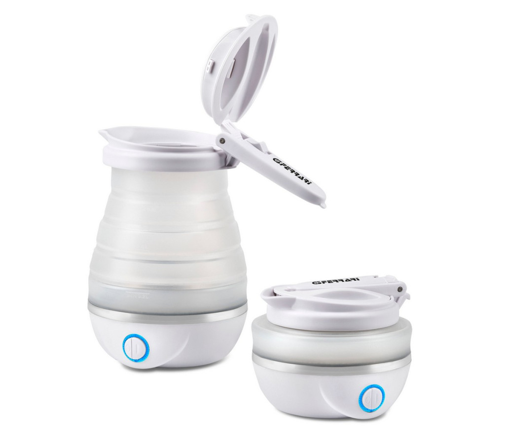 A G3Ferrari G10165 egy forradalmian új vízforraló , amit bárhova magaddal vihetsz. Az olasz mérnökök megint tökéleset alkottak. Ez a vízforraló összecsukható. Igen, jól olvassa. Összezárt állapotban kis helyen is elfér, így magunkkal vihetjük bárhova. Tökéletes egy utazásnál, de akár otthon is, ha kicsi a konyhánk és a vízforralót csak ritkán vesszük elő. A speciális szilikon tartály, a túlmelegedés elleni védelem biztonságos felhasználást nyújt.