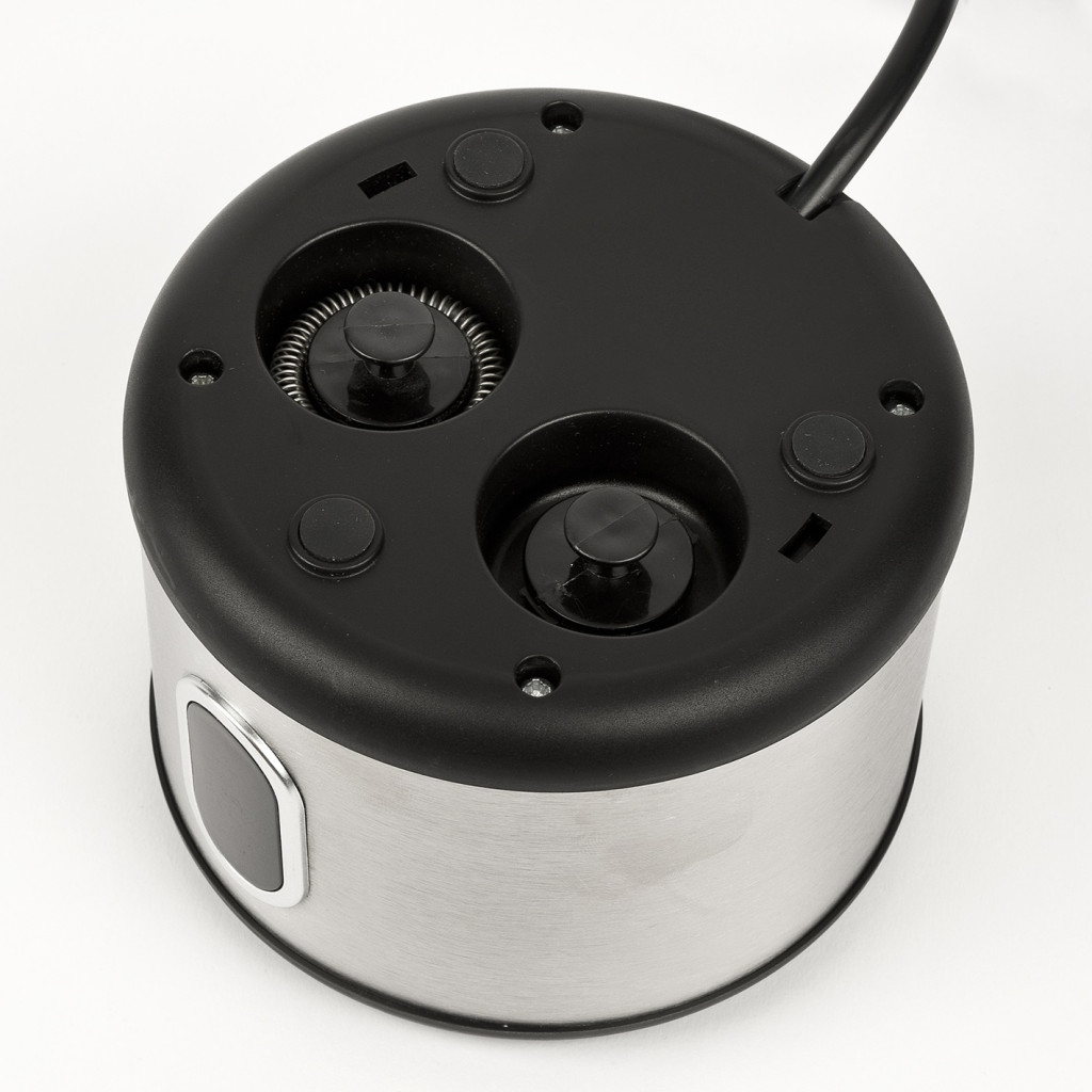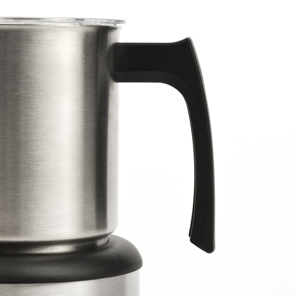A Choco-Lat tejhabosító egy innovatív háztartási készülék, amely három használati beállítást kínál: a csendes mágneses motorjának köszönhetően 3 perc alatt akár 250 ml tejet is felmelegíthetsz a reggeli kávéhoz, habosíthatod, hogy tökéletes cappuccinót készíthess, olyan lágyan és krémesen, mint a kávézókban, vagy akár hideg italokból is puha habot készíthetsz, hogy ínycsiklandó koktélokat vagy frissítő jeges kávét készíthess. A rozsdamentes acél pohár, amely a higiénia és tisztaság garanciája, levehető, így közvetlenül az asztalra szolgálhatod fel a tejet, és mosogatógépben is mosható.