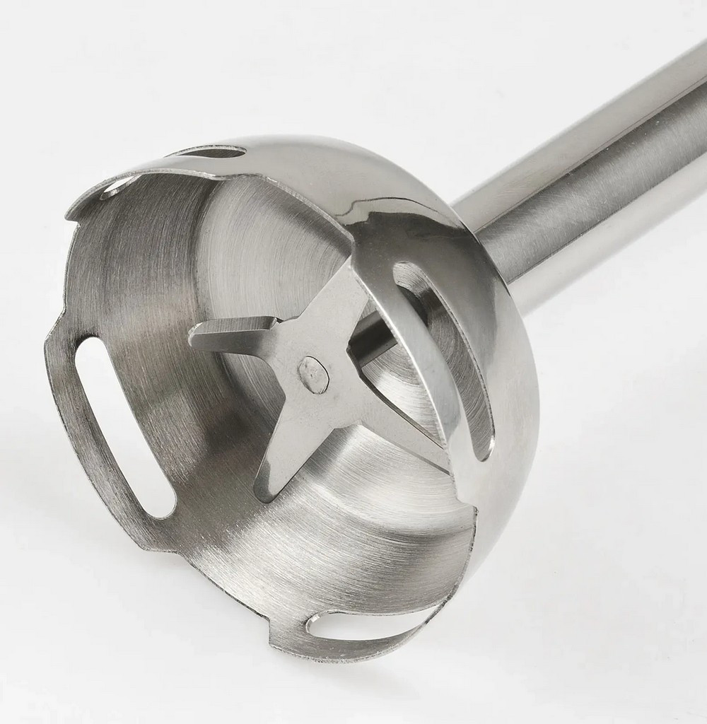 A levehető rozsdamentes acél szár és a 4 ágú acél penge különösen sima textúrát ad minden ételnél. A szár mosogatógépben is tisztítható, így mindig higiénikusan tartható.
