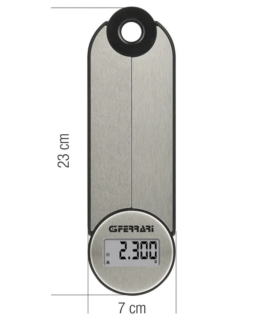 A G3Ferrari Vittoria digitális konyhai mérleg tökéletes választás azok számára, akik nem akarnak kompromisszumot kötni az esztétikum, a praktikusság és a helytakarékosság között. A karcsú, innovatív dizájn révén a Vittoria nemcsak szemet gyönyörködtető, hanem összecsukható és felfüggeszthető, így rendkívül kis helyet foglal a konyhában. A nagyméretű LCD kijelző egyszerű és gyors leolvasást biztosít, míg a rozsdamentes acéltányér tartósságot és könnyű tisztíthatóságot garantál.