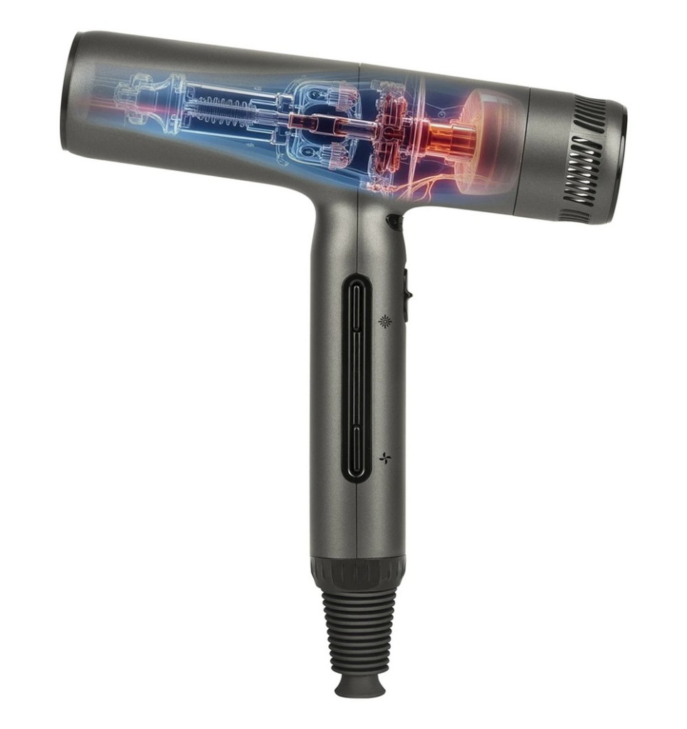 A Monna Lisa BLDC motorja akár 110.000 fordulat/perc sebességgel forgó levegőáramot generál, ami többszöröse egy hagyományos hajszárító teljesítményének. Ez azt jelenti, hogy a hajad fele annyi idő alatt szárad meg, miközben kevesebb hőterhelést kap – így hosszú távon sokkal egészségesebb marad.