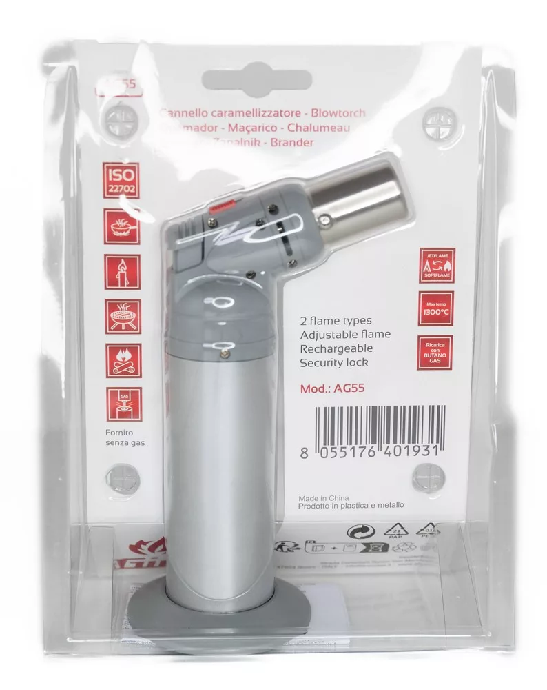 A Girmi AG55 zsebsárkány a séfek nélkülözhetetlen eszköze – tökéletes a crème brûlée, a pirított húsok és a flambírozott desszertek elkészítéséhez.