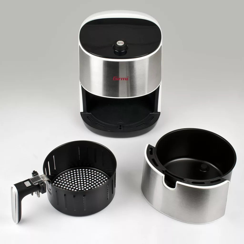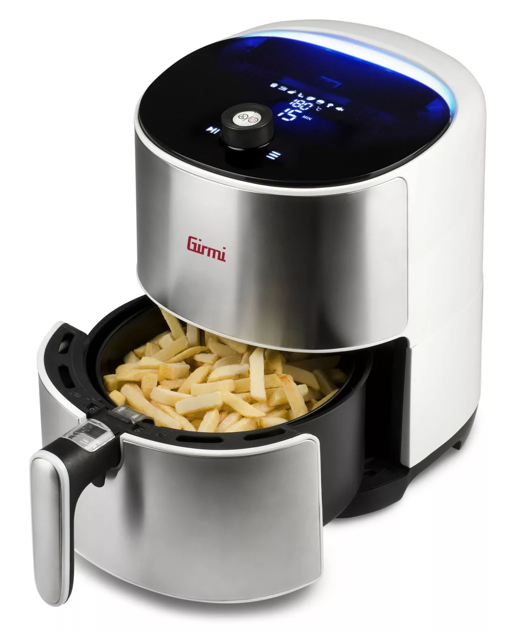 A Girmi FG95 EcoFrit forrólevegős fritőzével minden főzésünk tökéletes lesz. Őrizzük meg az ételeink ízét, zamatát ezzel a sütővel. A gyors légkeringetési technika lehetővé teszi, hogy kevés olajjal, vagy akár anélkül készítsük el kedvenc ételeinket, melyek így egészségesek, s ízletesek lesznek. A 8 előre beállított program mal szinte minden ételt el tudunk készíteni. A digitális kijelzővel szerelt sütőn bármikor ellenőrizni tudjuk a kiválasztott beállításokat. Főzzön egészségesen, főzzön Girmivel!