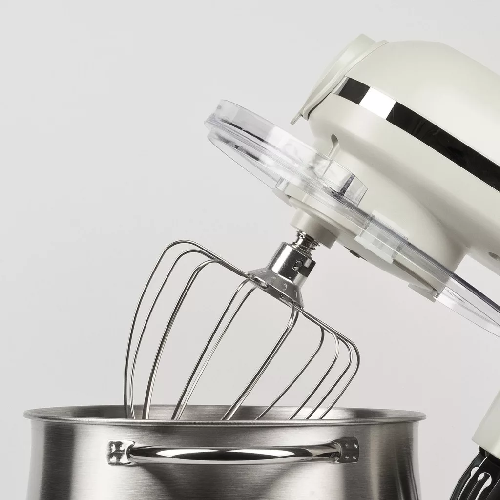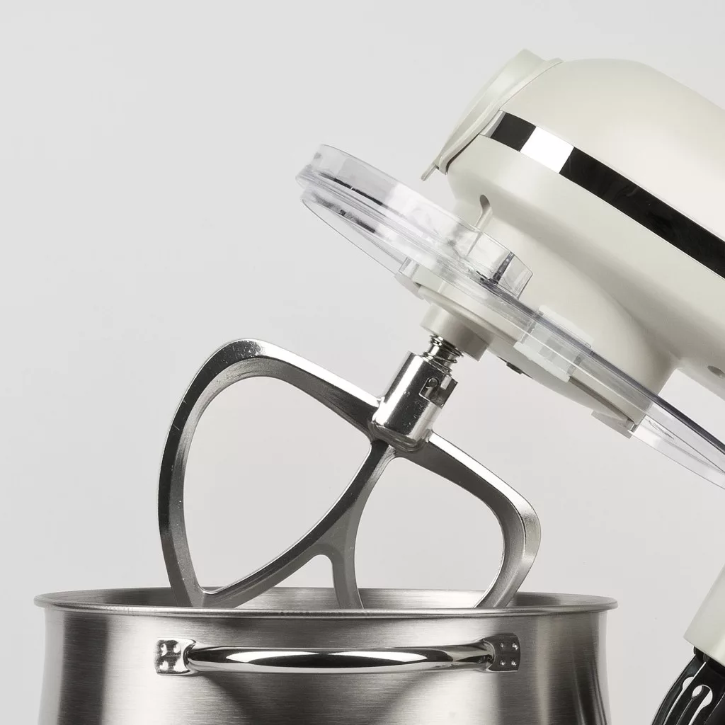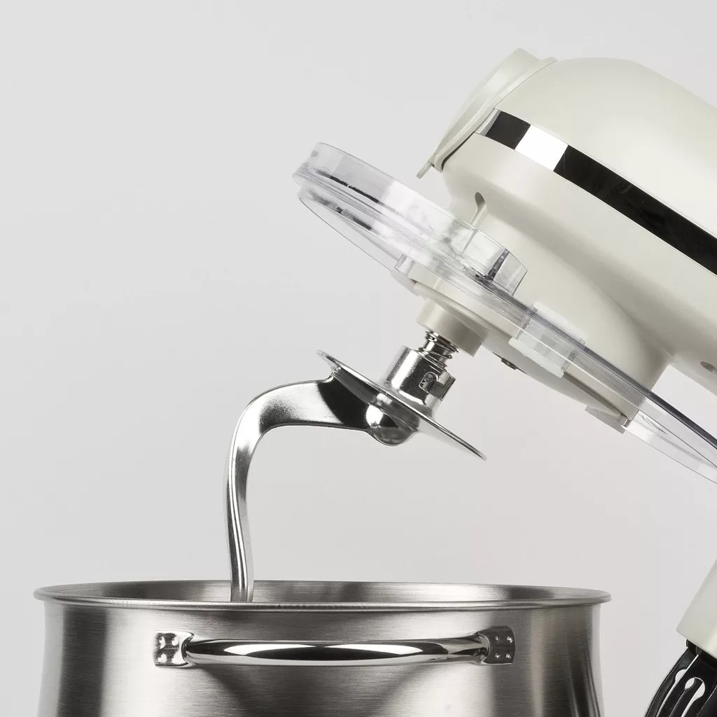 • Tartozékok : Dagasztó kampó és keverő alumíniumból, habverő rozsdamentes acélból, átlátszó műanyag fedél.