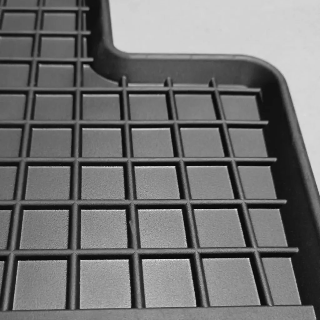 Gumiszőnyegek hagyományos négyzetes mintával. A szegély körülbelül 1 cm magas.