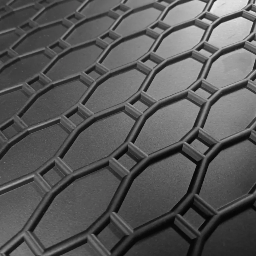 Kvalitní gumové autokoberce pro vůz VW Tiguan 2024- . Autokoberce mají tradiční (čtverčkovaný) design, díky kterému nedochází k přelévání vody, popř. tajícího sněhu po kobercích. Okraj autokoberců je přibližně 1 cm vysoký.