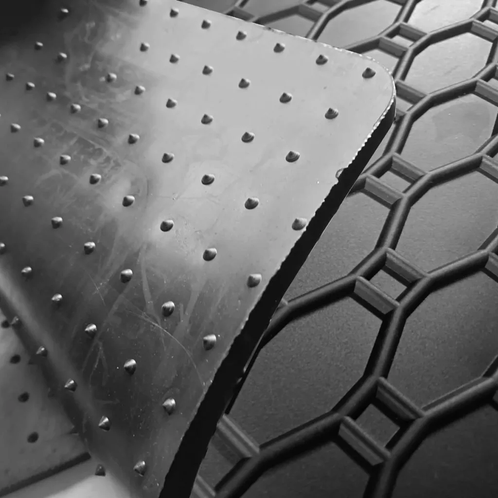 Gumové autokoberce s tradičním čtverečkovaným designem. Okraj je vysoký cca 1 cm.