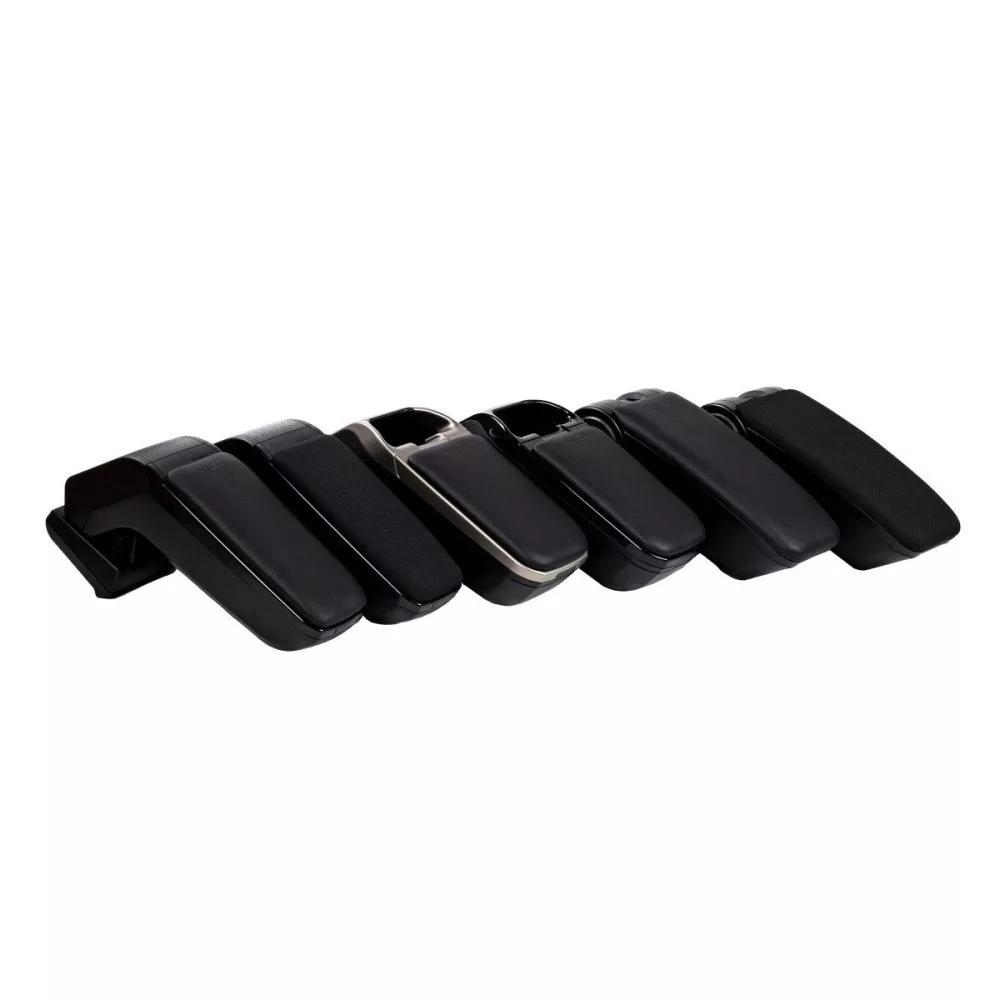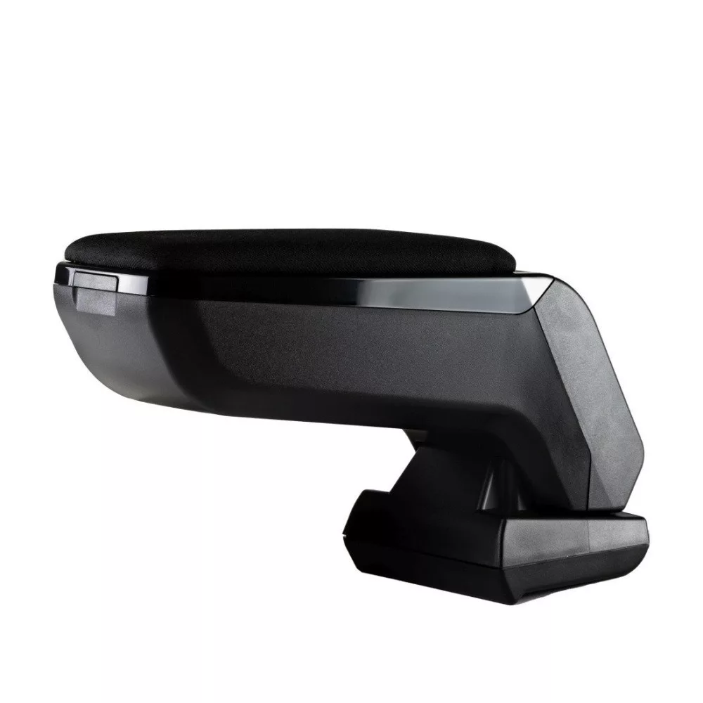 A könyöktámasz felső része az Ön választása szerint finom műbőrrel vagy textillel van bevonva fekete színben. Természetesen lehetőség van a könyöktámasz felső részének felnyitására, ahol tárolóhely található, amely gumírozott csúszásgátló alátéttel van ellátva. A támasz belsejében a fedél alsó részén két ceruzatartó és egy érmék tartója található.