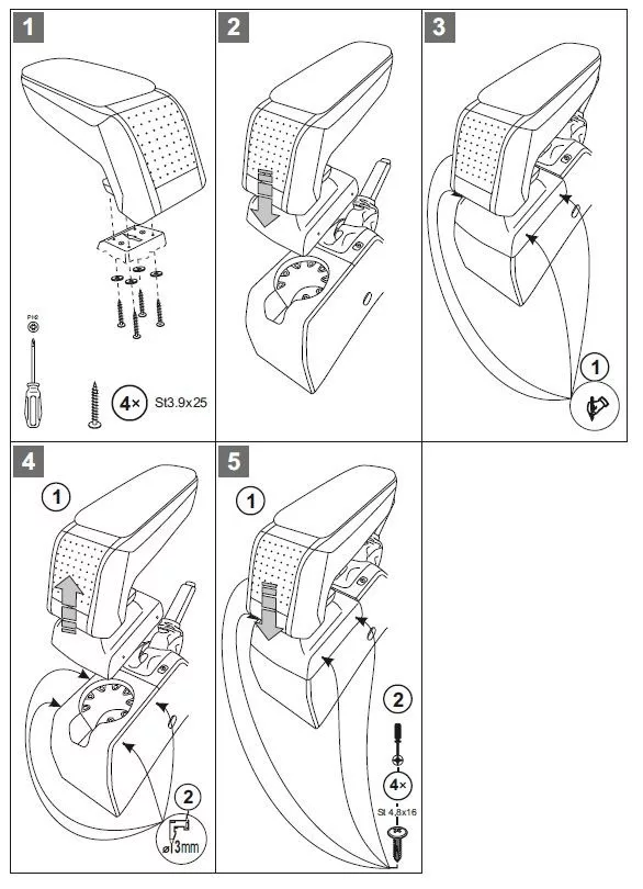 Az Armster S fekete színű könyöktámasz az Opel Astra H autóhoz, amelyet 2004 és 2014 között gyártottak, az első ülések közé történő beszerelésre készült személygépkocsikhoz.A könyöktámasz kényelmet és komfortot biztosít a vezető számára. A könyöktámasz felső része habanyaggal párnázott és finom műbőrrel van bevonva fekete színben. Az egész támasz 90 fokban felfelé is hajtható.Természetesen a könyöktámasz felső része felhajtható, ahol tárolóhelyet találhat kisebb tárgyak számára (például pénztárca, telefon vagy töltő).A könyöktámasz része egy pontos adapter is, amely lehetővé teszi az adott típusú autóhoz, jelen esetben az Opel Astra H-hoz való könnyű és gyors beszerelést.