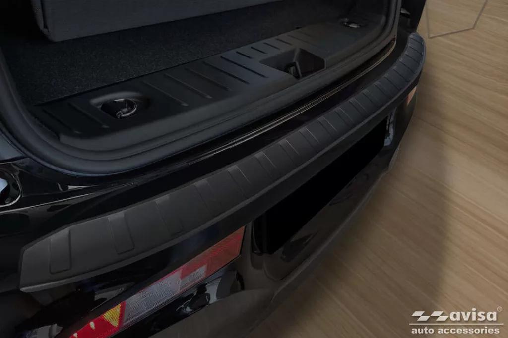 Ochranná lišta z nerezové oceli se strukturovaným nástřikem v matné černé barvě. Chrání nárazník a hrany kufru před odřením.