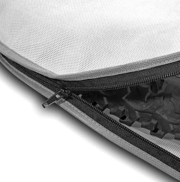 A tok a hosszú cipzár kinyitásával nyílik, amely a tok szélébe van varrva, így könnyen összecsukható, és a cipzár bezárása után véd a szennyeződésektől.