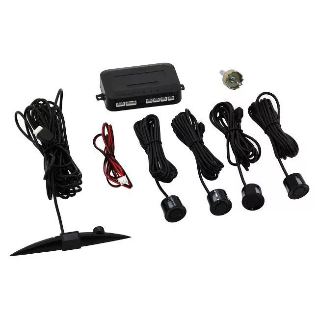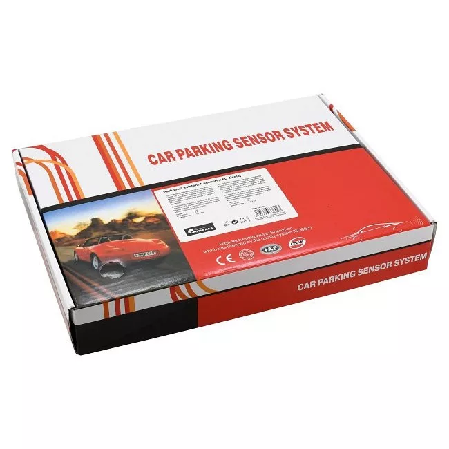 Parkolóasszisztens akadályérzékeléssel 2,5 m-ig és akusztikus jelzéssel. A LED kijelző pontosan mutatja az akadály távolságát.