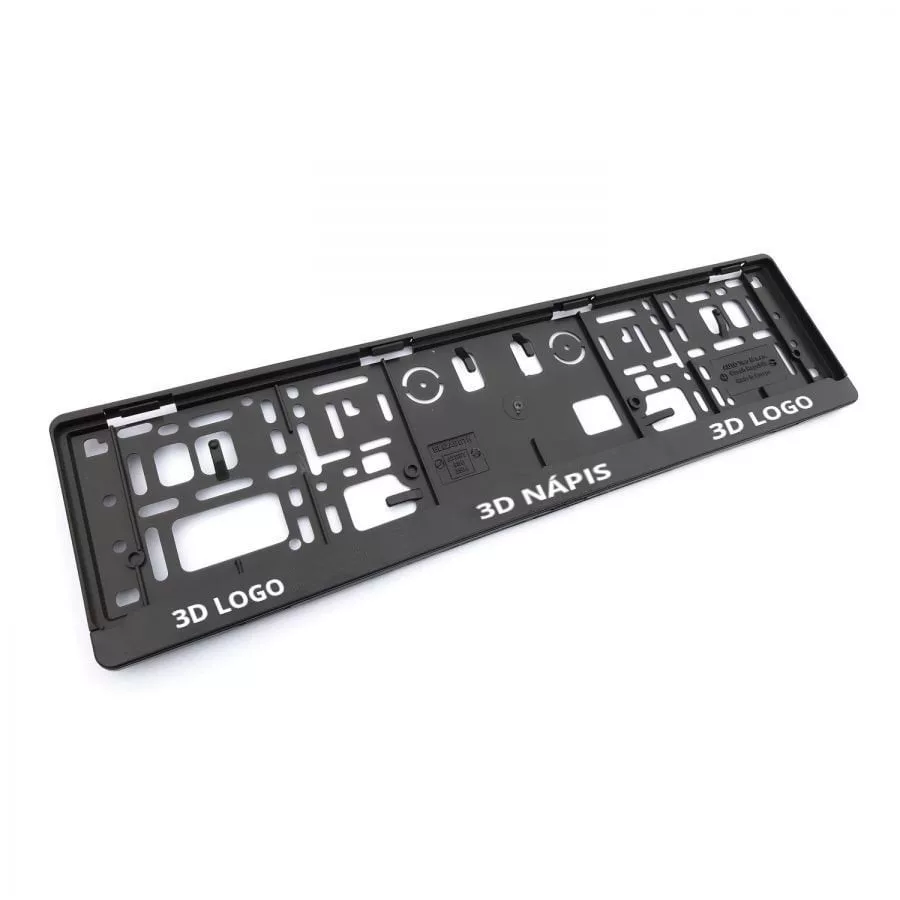 Fekete műanyag rendszámtábla alátét, amely alkalmas Volkswagen márkájú járművekhez. 3D logókkal és felirattal. Univerzális szereléshez szükséges lyukakkal ellátva.