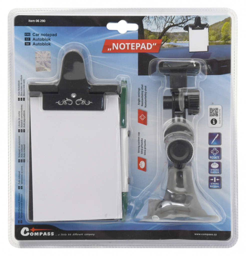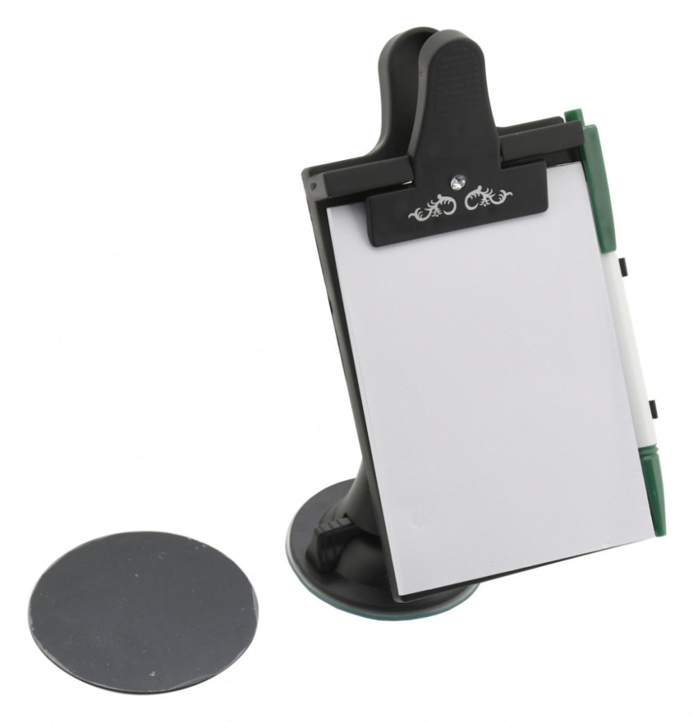 Praktikus jegyzettömb tartó üvegre vagy műszerfalra való rögzítéshez.