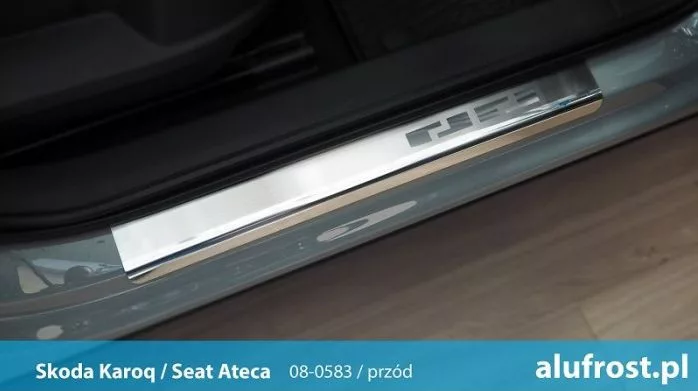 Prahové lišty vozu Škoda Karoq jsou vyrobené z nerezové oceli. Lišty jsou odolné proti veškerým povětrnostním vlivům i vlhkosti. Spolehlivě chrání před poškrábáním a mechanickým poškozením, které vzniká používáním automobilu.