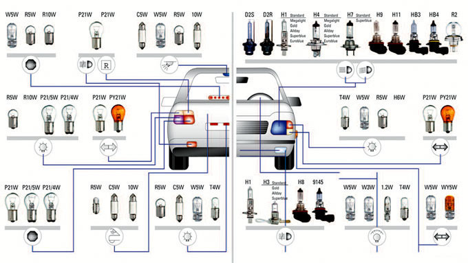 1 db H11 db P21/5W1 db PY21W1 db P21W1 db W5W1 db R5W1 db késes biztosíték 10A1 db késes biztosíték 15A