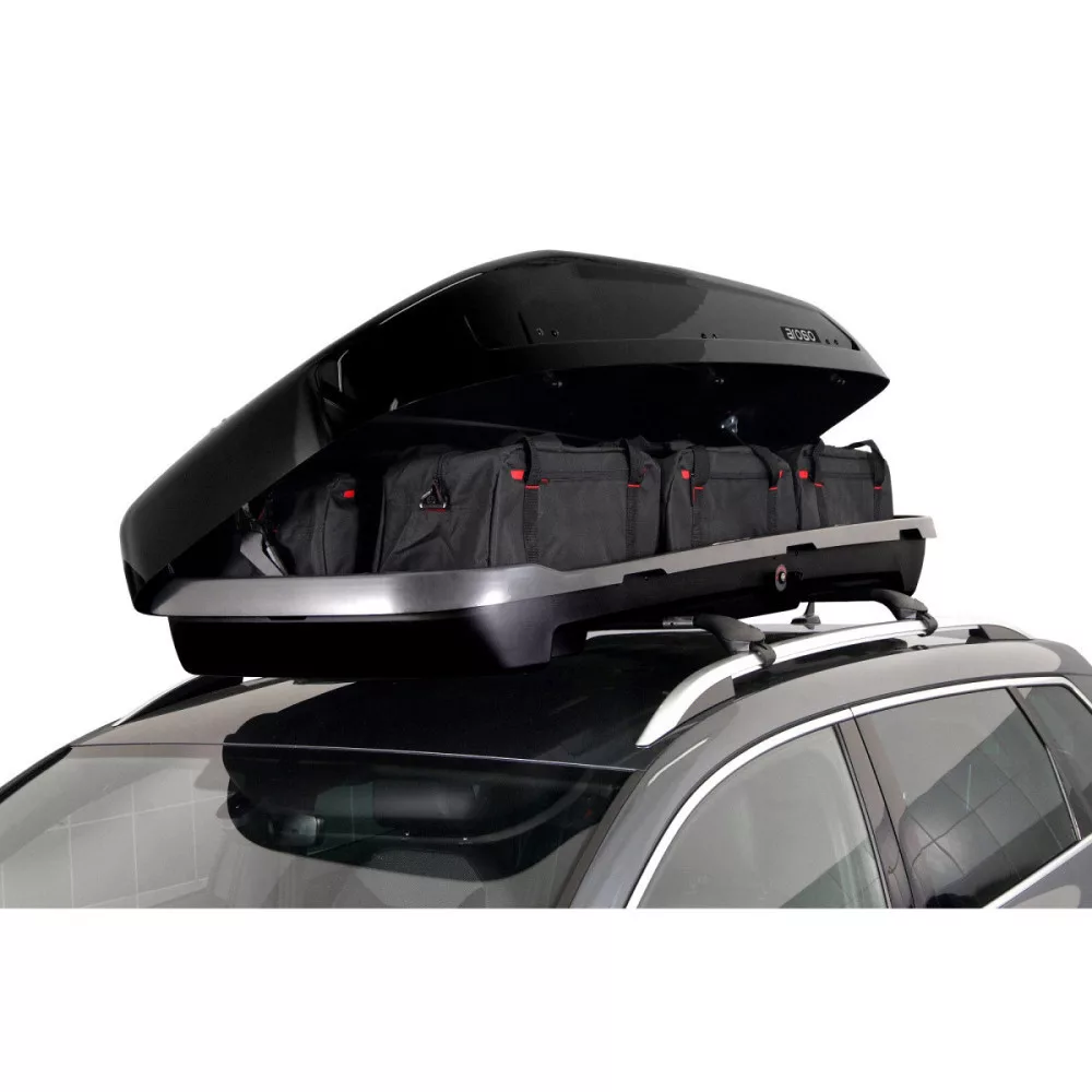 A Kjust utazótáska szett úgy van konfigurálva, hogy maximálisan kihasználja az Aroso Hamburg 600 tetőbox terét. A tetőbox tere akár 30%-kal hatékonyabban kihasználható, mint különböző méretű utazótáskák és bőröndök használatával.