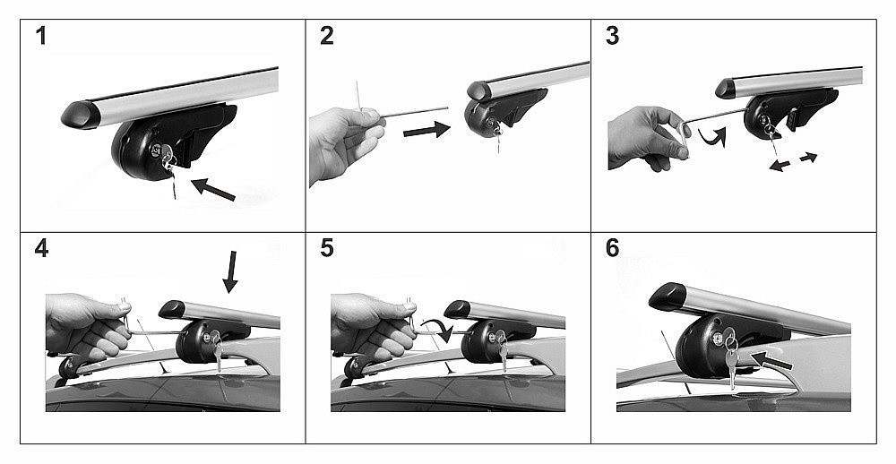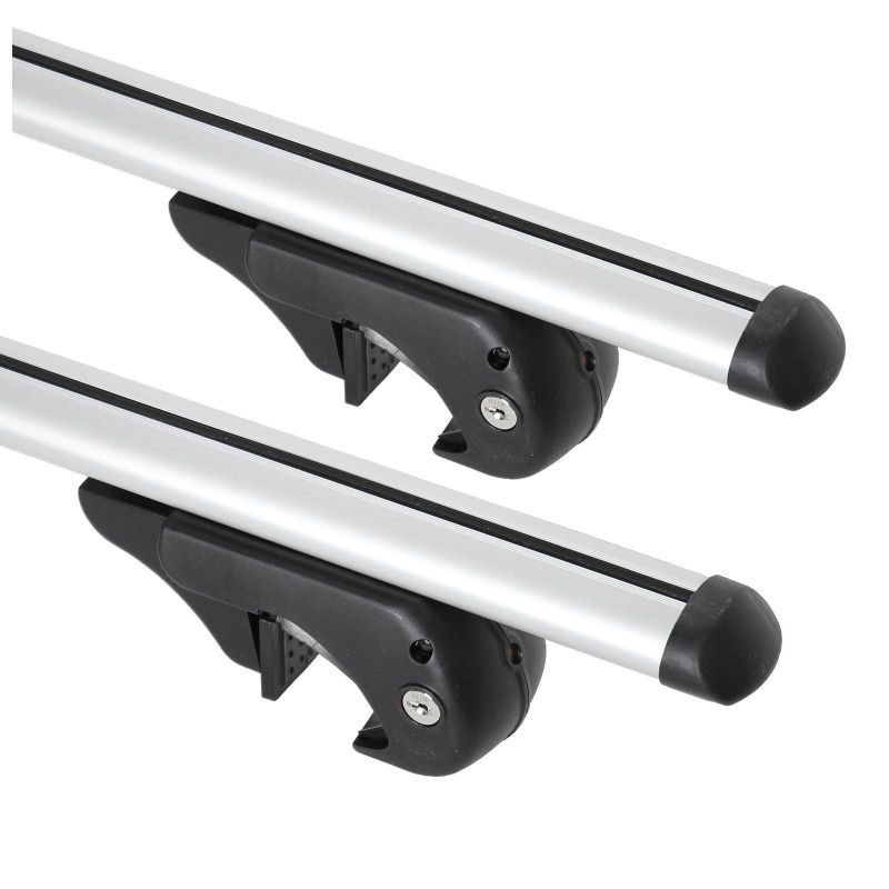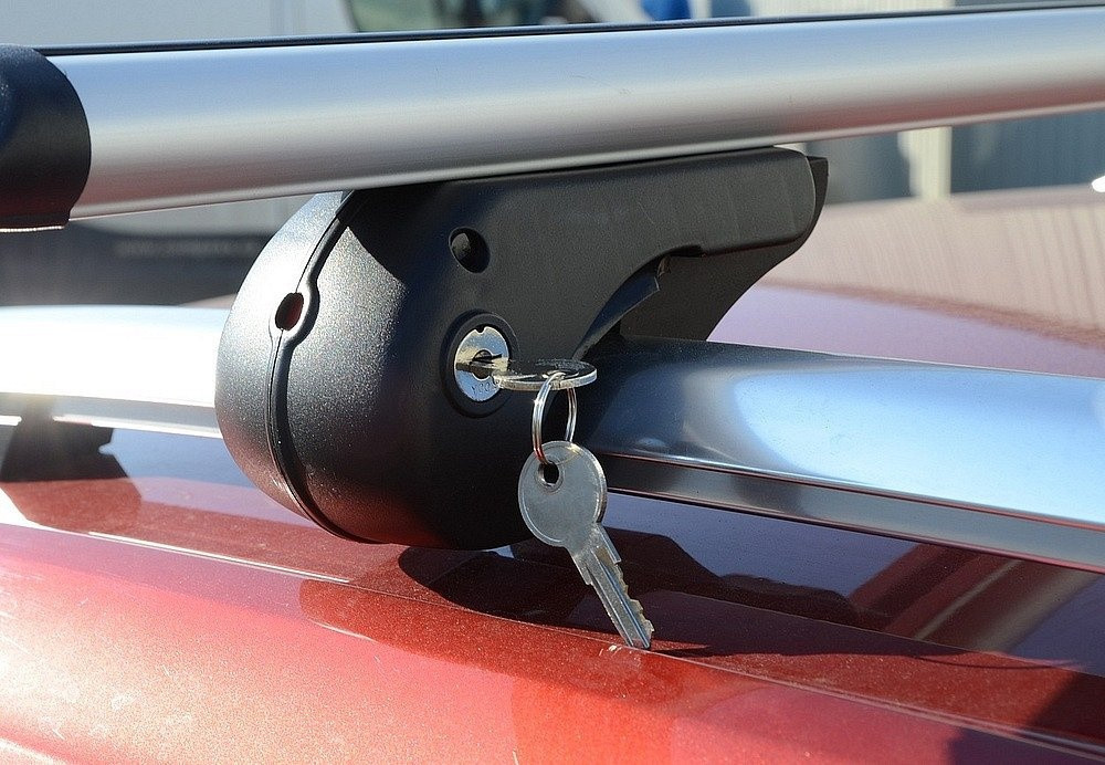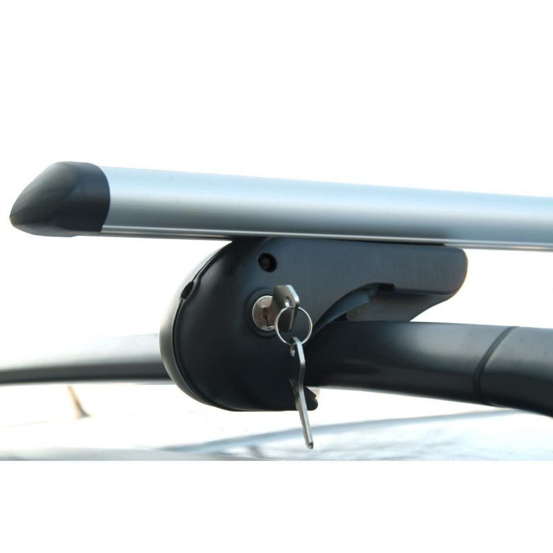 Univerzális, zárható tetőcsomagtartó alumínium szerkezettel, amely járművekhez készült hosszanti tartókkal (hágusokkal). T-sín nélkül.