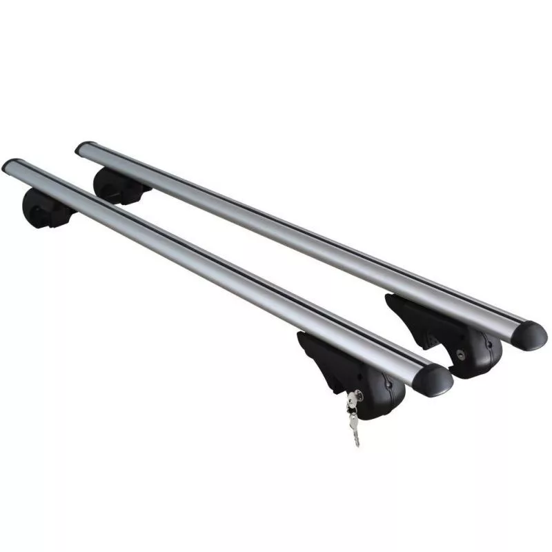 Univerzális, zárható tetőcsomagtartó alumínium szerkezettel, amely járművekhez készült hosszanti tartókkal (hágusokkal). T-sín nélkül.