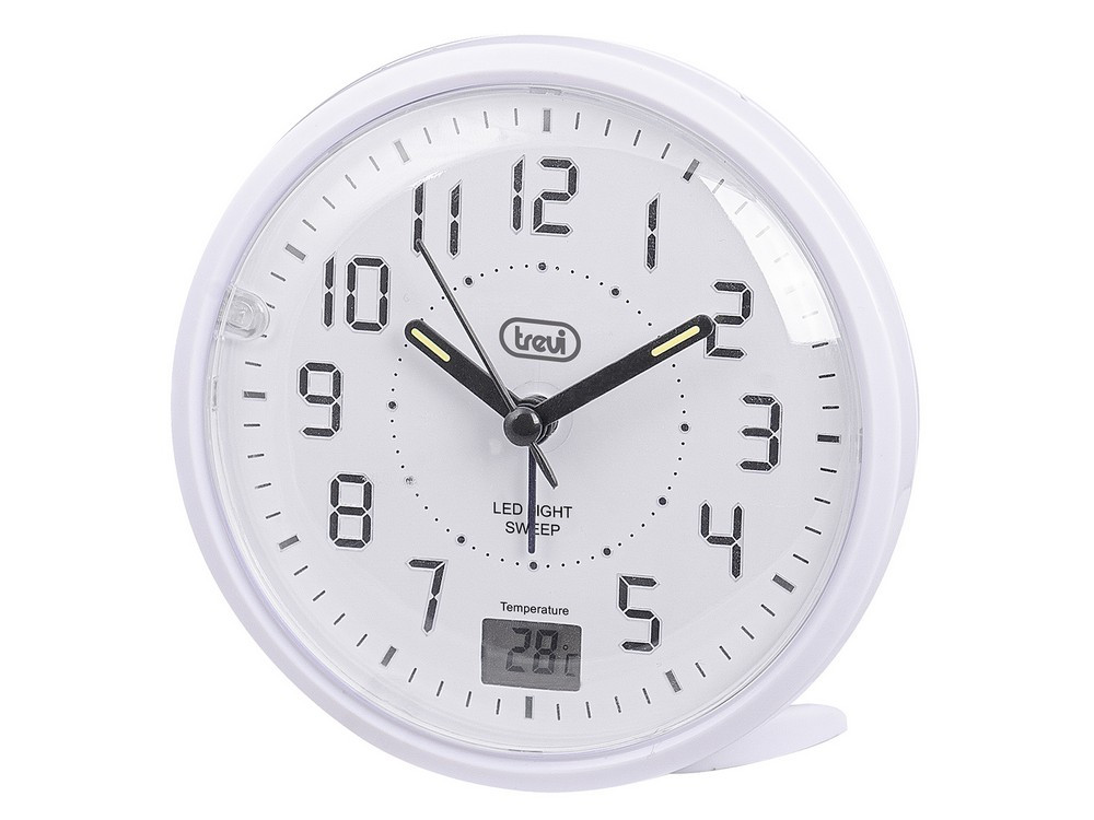 Trevi SL 3P27 kvarc ébresztőóra LED háttérvilágítással, hőmérséklet-kijelzővel és hangtalan SWEEP működéssel, fehér szín