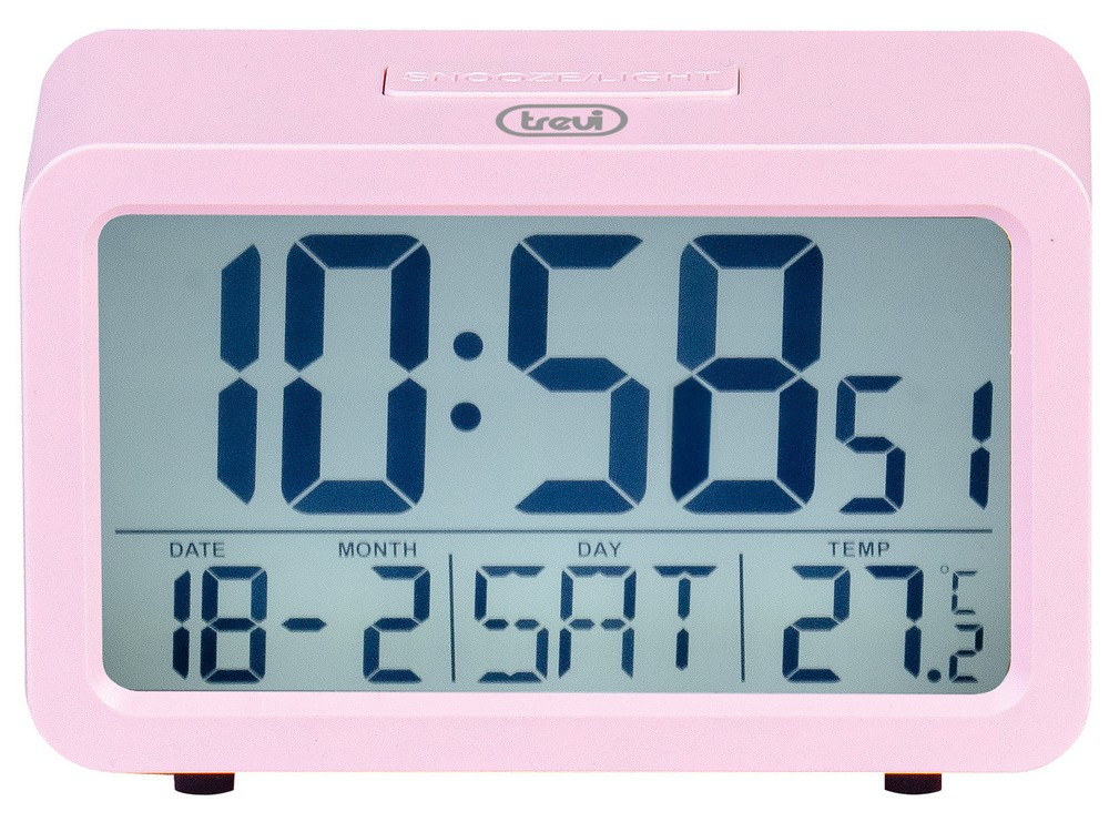 Trevi SLD 3P60 modern ébresztőóra nagy LED kijelzővel, hőmérővel, naptárral és SNOOZE funkcióval. Rózsaszín