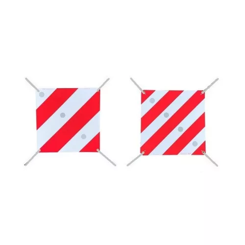 Jelző teljesen fényvisszaverő tábla 50x50 cm-es méretben a kerékpártartók biztonságos jelölésére a hátsó ajtón, vonóhorogra szerelt kerékpártartókon vagy lakóautók kerékpártartóin.