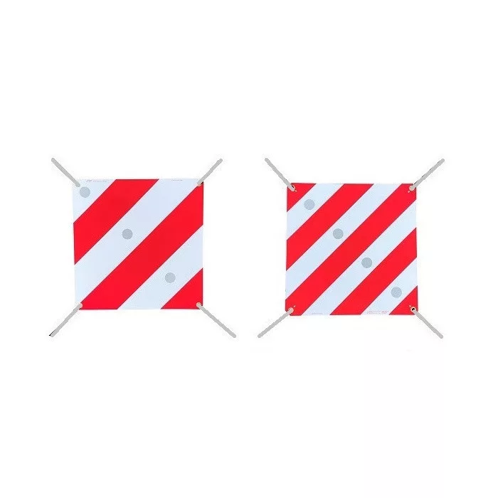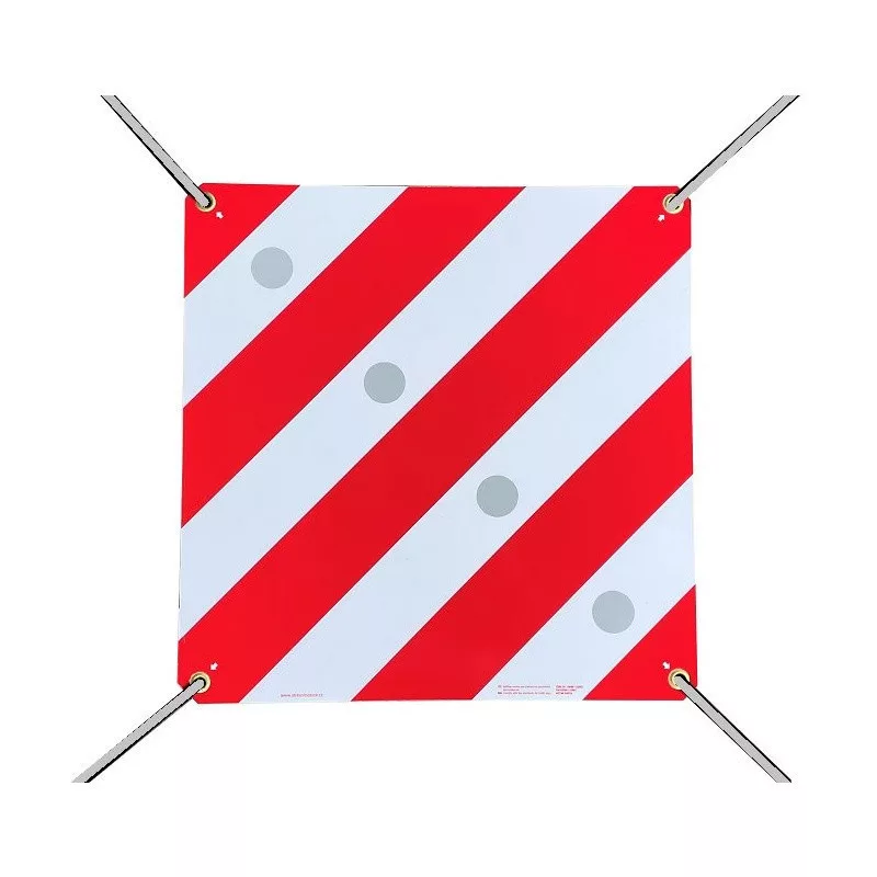 Kétoldalas fényvisszaverő tábla, amely megfelel az olasz és spanyol törvényeknek, amelyek meghatározzák a visszaverő felület méretét és a fényvisszaverés intenzitását.