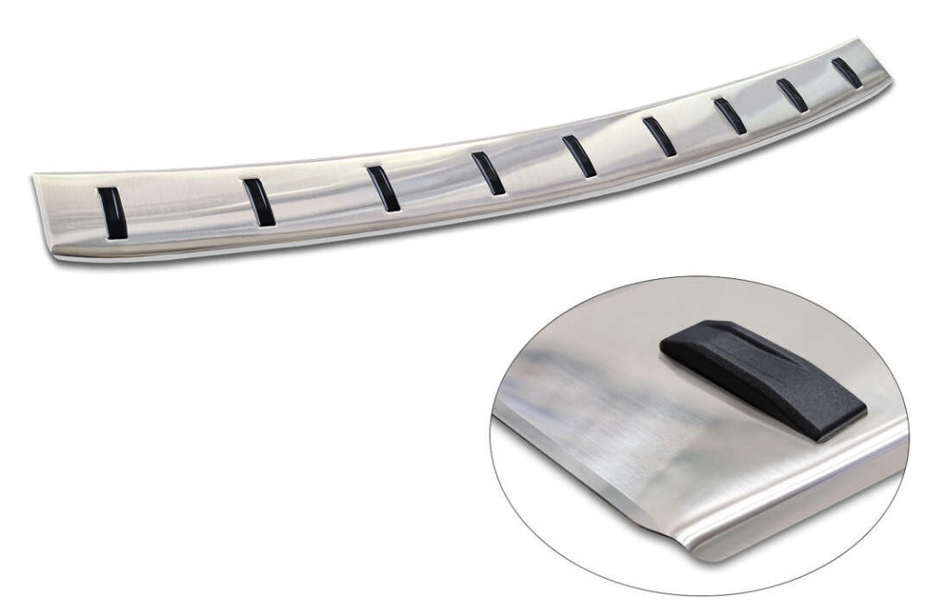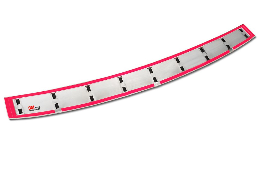 0,8 mm vastag rozsdamentes acél csík műanyag bordázattal. Védi a lökhárítót és a csomagtér szélét a karcolásoktól.