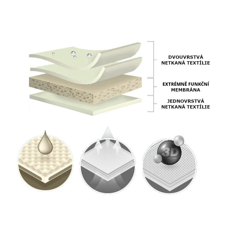 • az egyes rétegek összetétele (nem szőtt textília, polietilén, membrán, bélés)