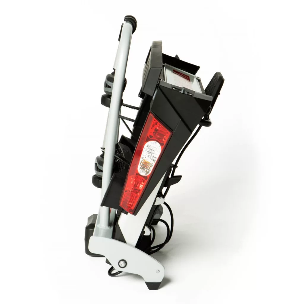 Miután levettük a vonóhorogról, a tartó maximálisan kompakt méretekre (74 x 28 x 67cm) hajtható össze.