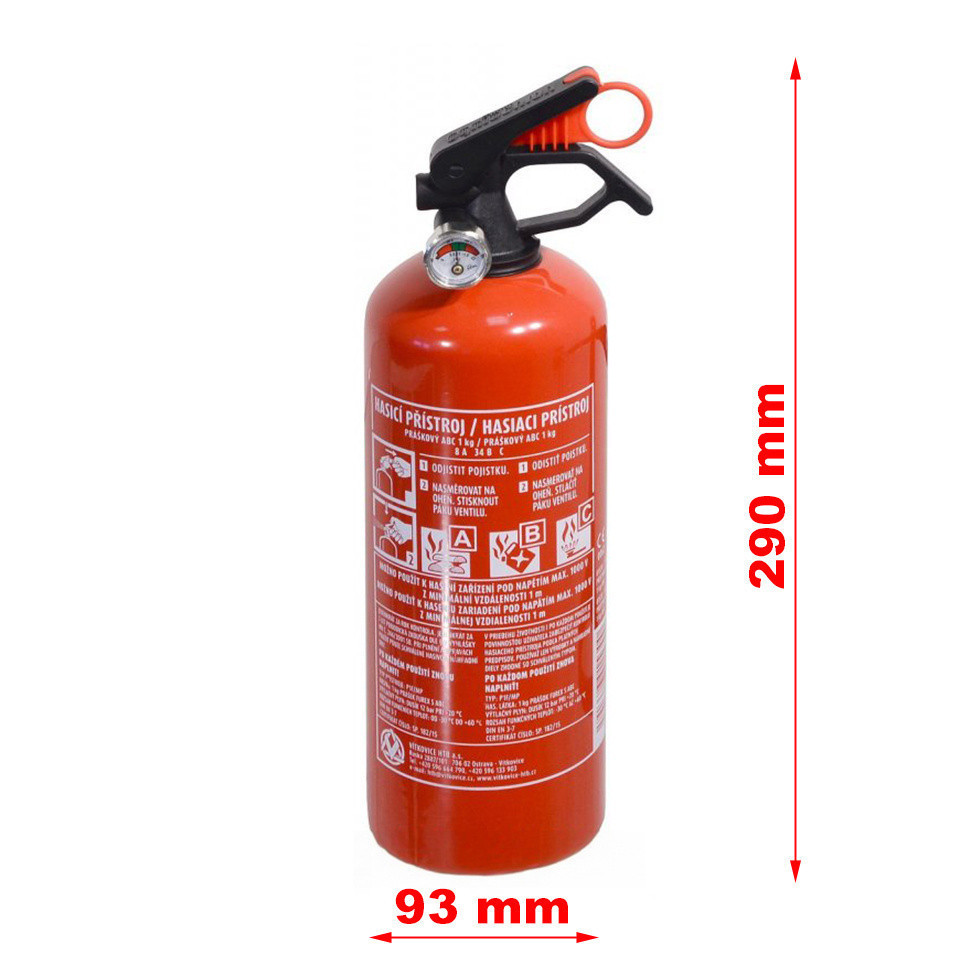 Porral oltó tűzoltó készülék ebben a méretben alkalmas a tűz kezdeti fázisának oltására. Mérete és kompakt kialakítása miatt ideális autóba. Alkalmas más közlekedési eszközökbe, üzletekbe, iparba, archívumokba, háztartásba és mindenhol, ahol az elektromos berendezések vízzel vagy habbal történő károsodása nem megengedett. A tűzoltó készülék része egy nyomásmérő is, amely a palack aktuális nyomását mutatja.Használható az A, B, C tűzveszélyességi osztályba tartozó anyagok tüzeinek oltására.Méretek magasság/átmérő (mm): kb. 280/90Súly (kg): 1,8 Oltóanyag (l): ABC 1 kgKiszorító közeg: NitrogénHőmérsékleti működési tartomány (°C): -30 és +60 közöttMinimális működési idő (s): 6Tűzveszélyességi osztályok