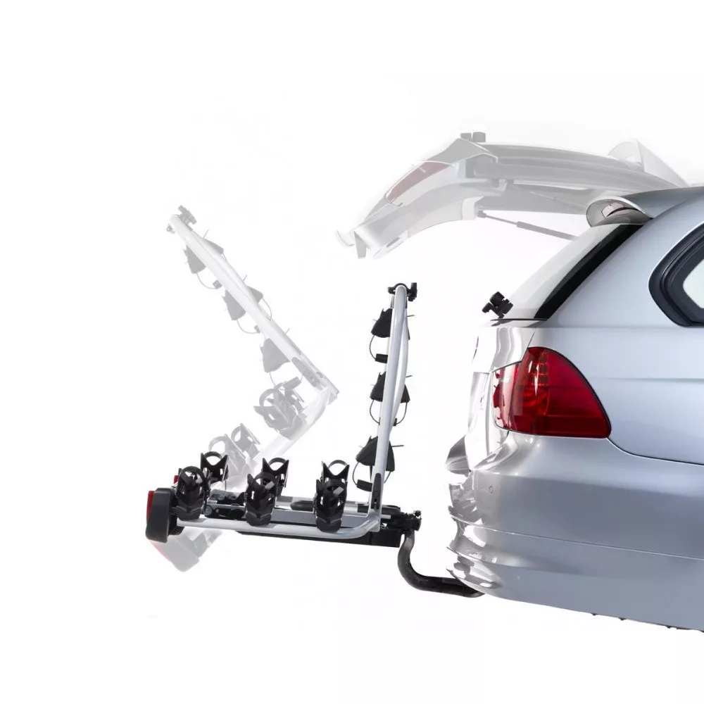 A tartó a kerékpárokkal együtt kiválóan kiegyensúlyozott, és lehajtáskor elegendő hozzáférést biztosít a csomagtérhez.