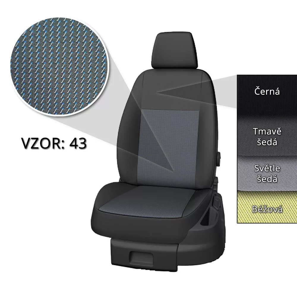 Střih autopotahů přesně odpovídá tvaru sedaček vozu VW Transporter T5 2003-2015 (3 místa). Autopotahy svým střihem, kvalitou a odolností látky několikánásobně předčí autopotahy univerzální.