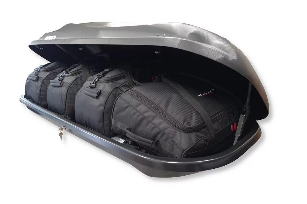 A Kjust utazótáska készlet úgy van kialakítva, hogy maximálisan kihasználja a Menabo Mania 460 tetőbox terét. A tetőbox térfogata akár 30%-kal hatékonyabban kihasználható, mint különböző méretű utazótáskák és bőröndök használatakor.