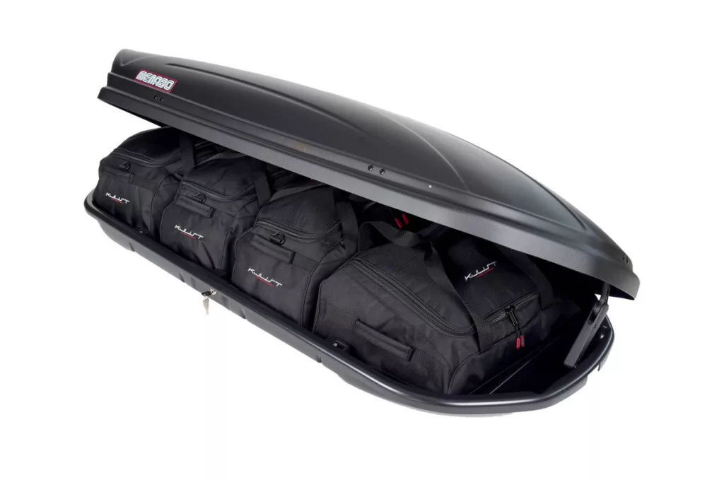 A Kjust utazótáska készlet úgy van konfigurálva, hogy maximálisan kihasználja a Menabo Marathon 460 tetőbox terét. A tetőbox térfogata akár 30%-kal hatékonyabban kihasználható, mint különböző méretű utazótáskák és bőröndök használatakor.