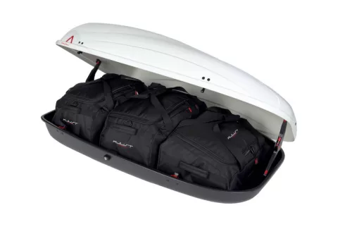 A Kjust utazótáska készlet úgy van kialakítva, hogy maximálisan kihasználja a G3 Helios 400 tetőbox terét. A tetőbox térfogata akár 30%-kal hatékonyabban kihasználható, mint különböző méretű utazótáskák és bőröndök használatakor.