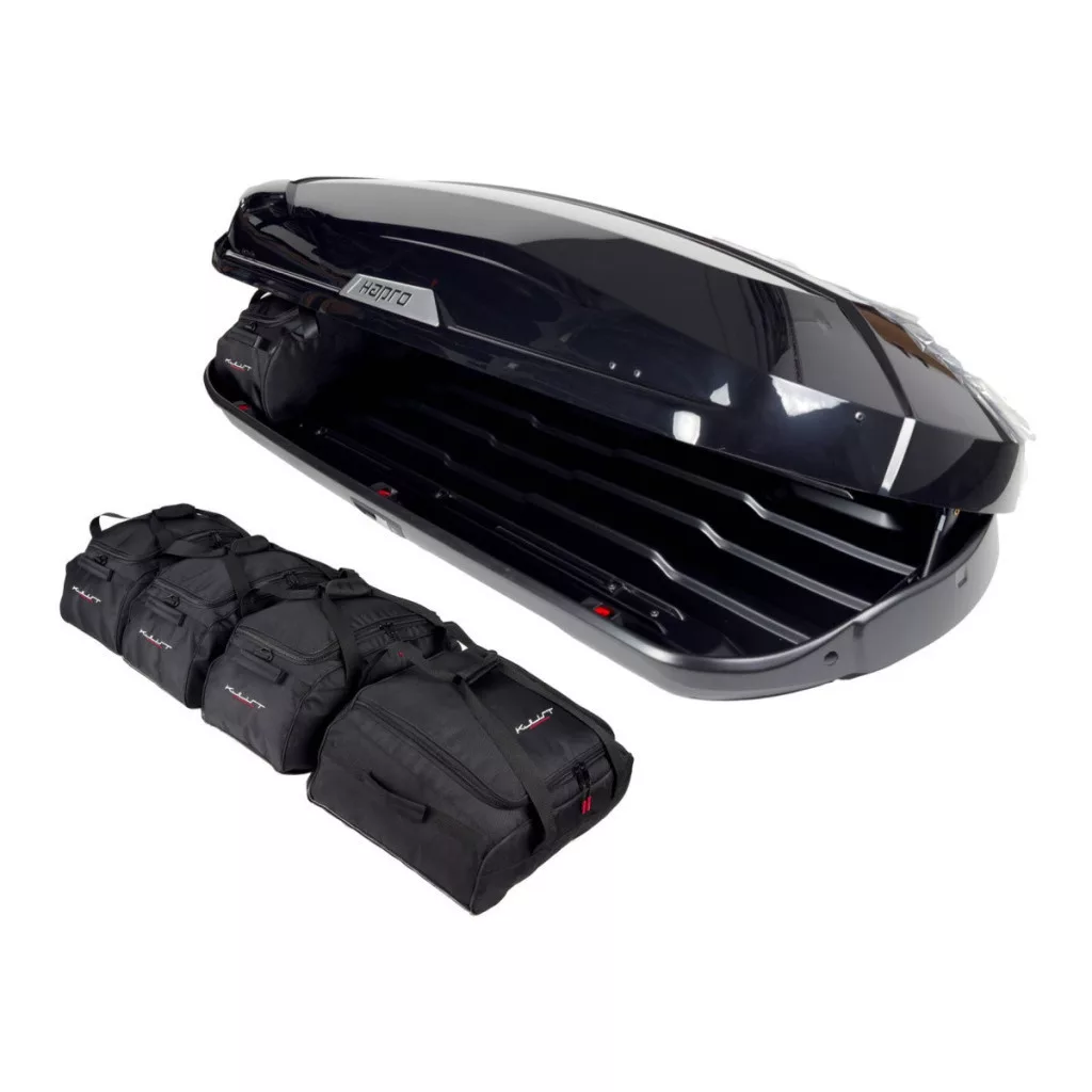 A Kjust utazótáska készlet úgy van konfigurálva, hogy a Hapro Trivor 640 tetőbox térfogatát maximálisan kihasználja. A tetőbox térfogata akár 30%-kal hatékonyabban kihasználható, mint különböző méretű utazótáskák és bőröndök használatakor.