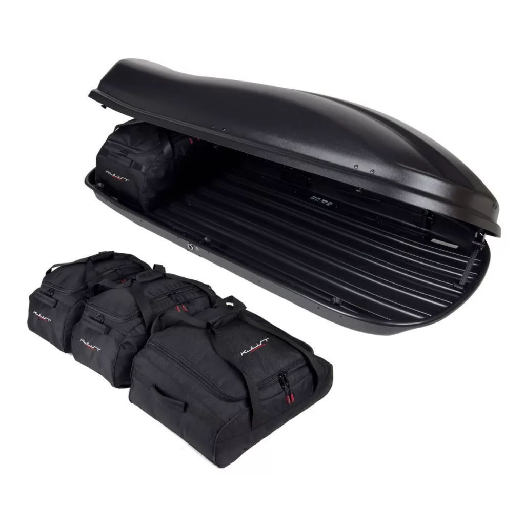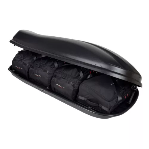 A Kjust utazótáska készlet úgy van kialakítva, hogy maximálisan kihasználja a Farad Marlin N6 tetőbox terét. A tetőbox térfogata akár 30%-kal hatékonyabban kihasználható, mint különböző méretű utazótáskák és bőröndök használatakor.
