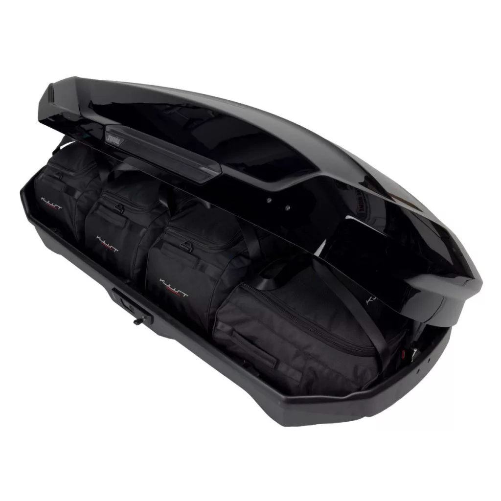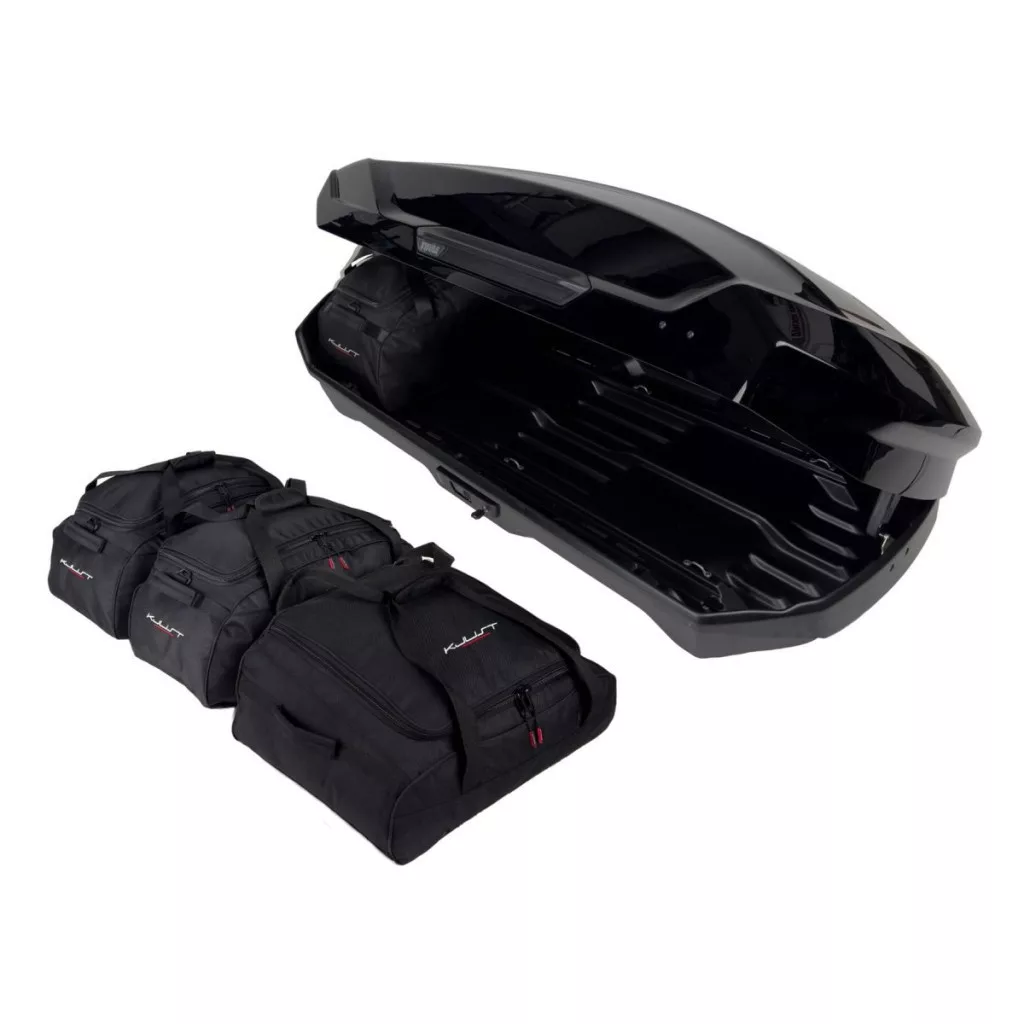 A Kjust utazótáska készlet úgy van kialakítva, hogy maximálisan kihasználja a Thule Motion 3 M tetőbox terét. A tetőbox térfogata akár 30%-kal hatékonyabban kihasználható, mint különböző méretű utazótáskák és bőröndök használatakor.