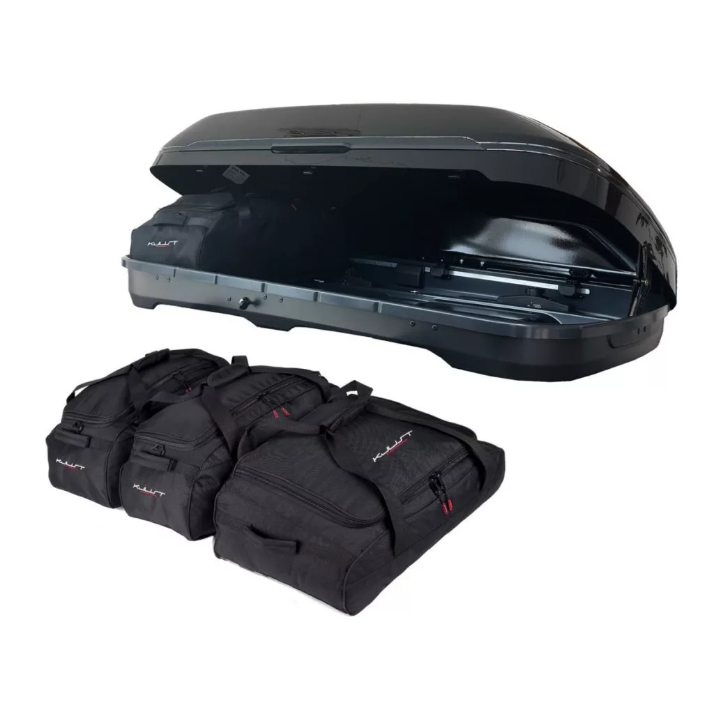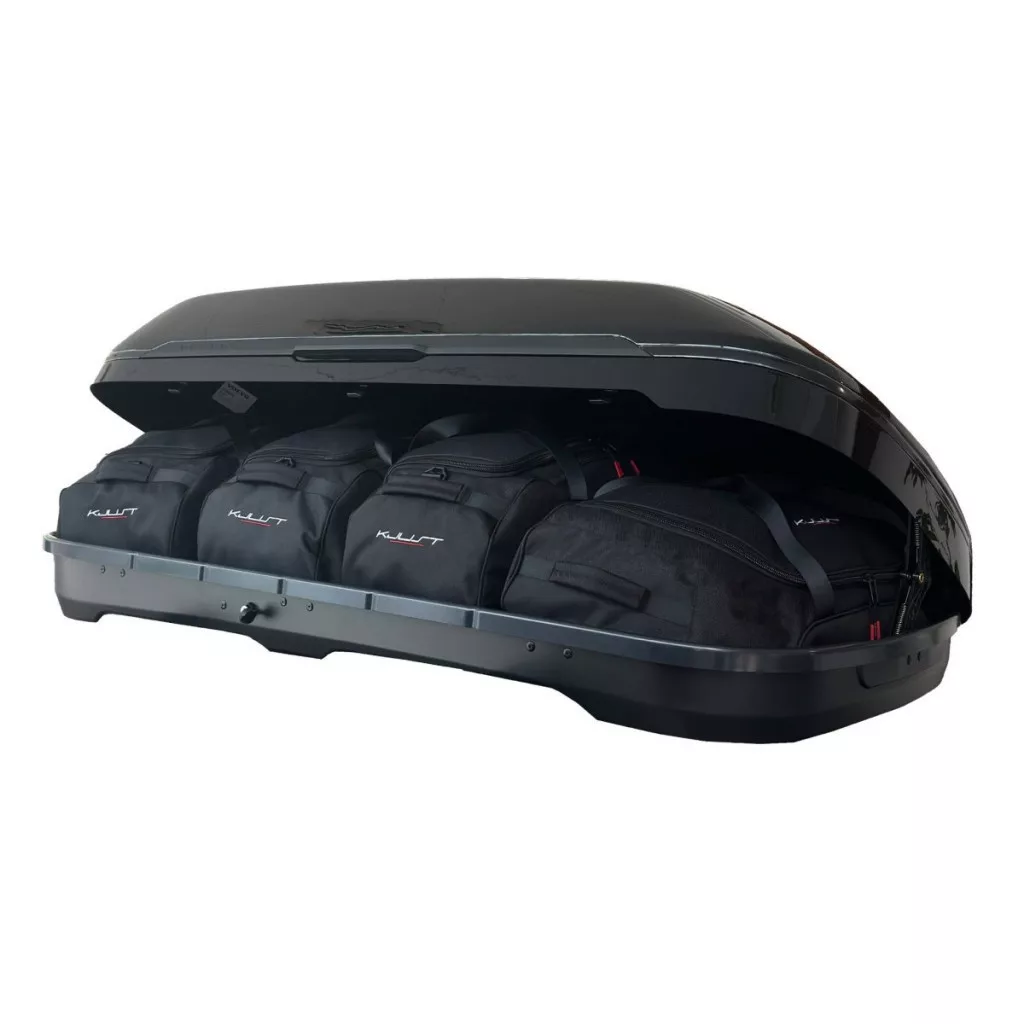 A Kjust utazótáska készlet úgy van kialakítva, hogy maximálisan kihasználja a Volvo Travel 400 tetőbox terét. A tetőbox térfogata akár 30%-kal hatékonyabban kihasználható, mint különböző méretű utazótáskák és bőröndök használatával.