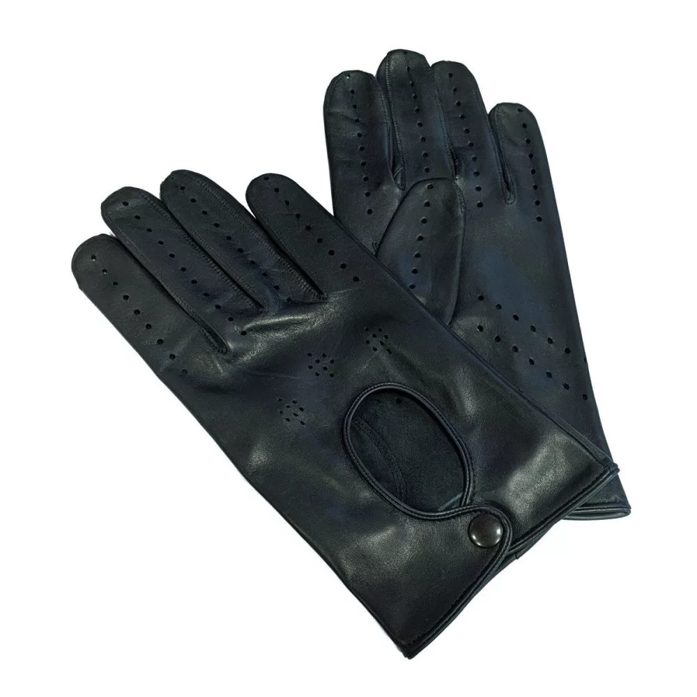 Luxus férfi bőr vezetői kesztyű valódi báránybőrből fekete színben.