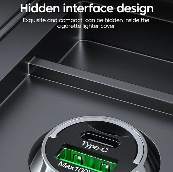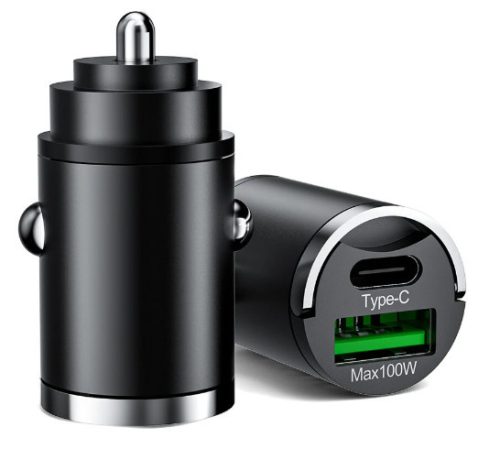 2 portos MAX 100W-os autós gyorstöltő adapter - 12/24V - USB-A + USB-C (PD/QC)