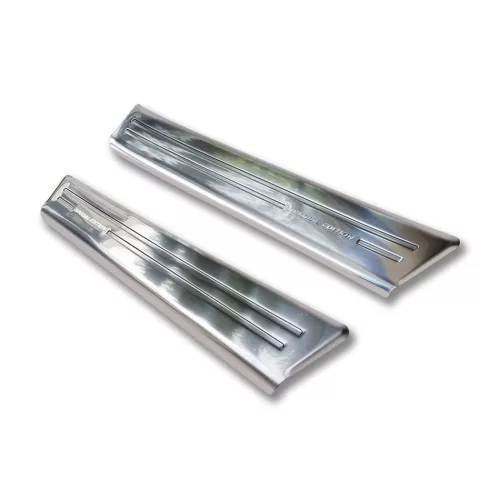 Rozsdamentes acél öntapadós küszöbvédő. A készlet 2 darabot tartalmaz.