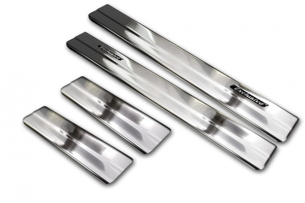 Rozsdamentes acél öntapadós küszöbvédő. A készlet 4 darabot tartalmaz.