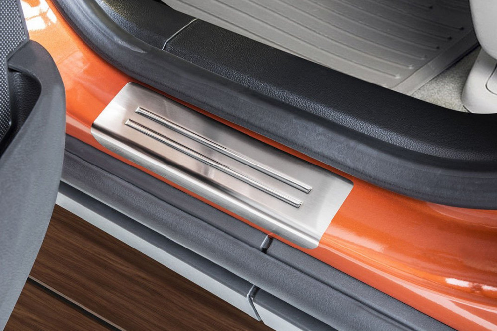 Rozsdamentes acél öntapadós küszöbvédő. A készlet 4 darabot tartalmaz.